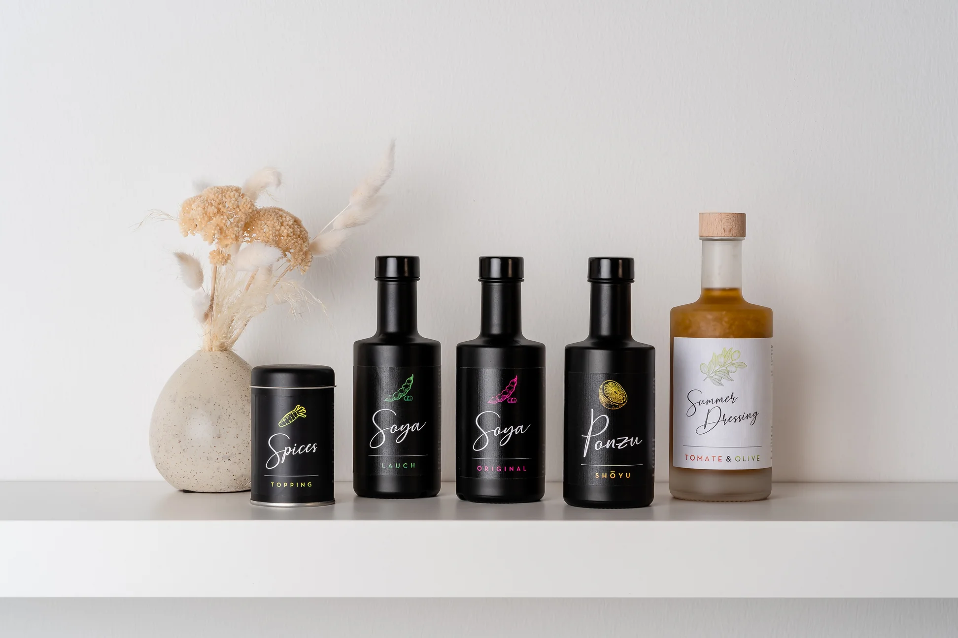 Die neue Soya Sauce steht in den Varianten Soya Original und Soya Lauch, sowie als Ponzu Shōyu bereit und das Spices Topping erweitert die Produktfamilie um ein genussreiches Mitglied – zum Drüberstreuen.